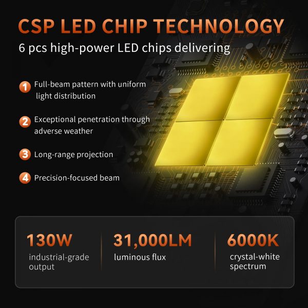 Проектиран за изключителна надеждност, той достига пълна яркост мигновено, което го прави идеален както за дълги, така и за къси светлини. Светодиодите са невероятно мощни и висококачествени, произвеждайки до 1700% повече светлина в сравнение с традиционните халогенни крушки.