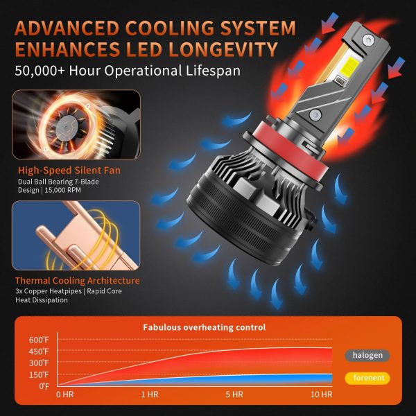 Температурен сензор, разположен близо до LED чипсета, следи топлината в реално време. Ако температурата се повиши над прага, вентилаторът увеличава скоростта си. Ако прегряването продължи, светлинният поток се намалява леко, за да се предотврати повреда – което прави повредата на чипсета практически невъзможна, а крушките изключително издръжливи.