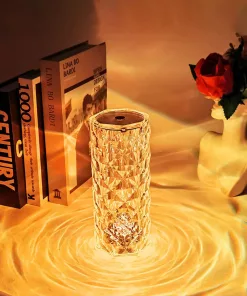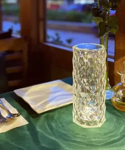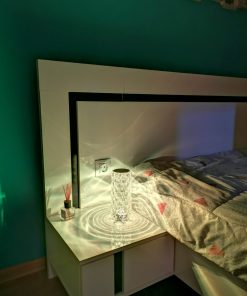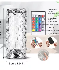 Създайте прекрасна, романтична и топла атмосфера с тази зашеметяваща, презареждащата се лампа. Изработена от плексиглас, с кристалният си ефект, лампата пречупва светлината в изумителни форми и създава мека и уютна атмосфера, която ще направи всяка стая по-приветлива и уютна за всеки. Това е идеалният подарък за всеки, който обича да осветява своето пространство! Отпуснете се в топлото сияние на тази нова луксозна настолна лампа. Използвайте я като лампа за нощното шкафче в спалнята, за да ви успокои, докато заспите. Тази лампа също е много подходяща за всекидневни, трапезарии, офиси, коледен декор, коридори, килери, хотели, офиси, купони, къмпинг и др.
